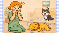 犬が突然ケイレンしたらどうする?慌てずに取るべき行動、安全確保、動画記録、受診の目安を動物看護師目線でやさしく解説。はじめての発作でも安心して対応できるポイントをまとめました。