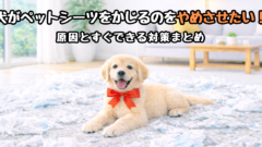 犬がペットシーツをかじる原因と対策を解説。誤飲防止のための具体的な方法や、かじりにくいおすすめアイテムも紹介します。