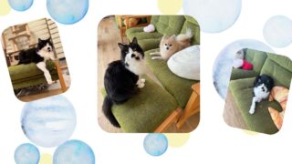 お気に入りの緑のソファで、にっこりご機嫌なララちゃん🐾