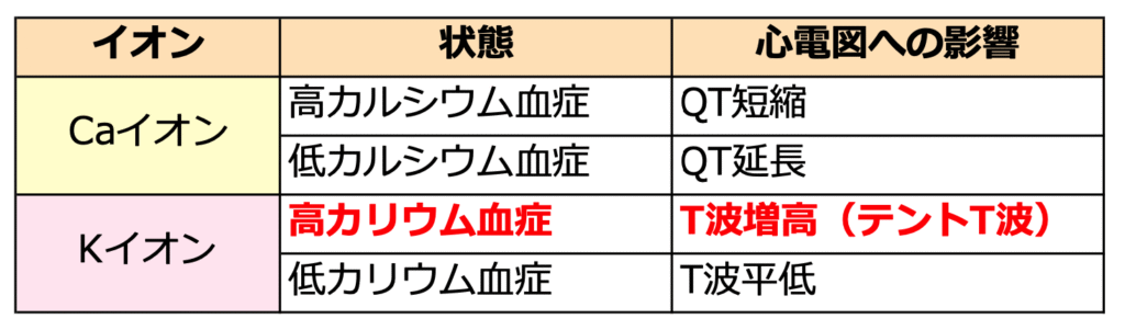☆イオンの心電図への影響をまとめた表はこれだよ〜