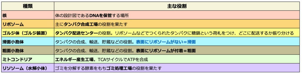 細胞内小器官はそれぞれ特徴的な仕事がある!