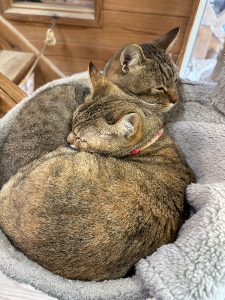 キャットタワーでくつろぎ中のネコちゃんたち。
