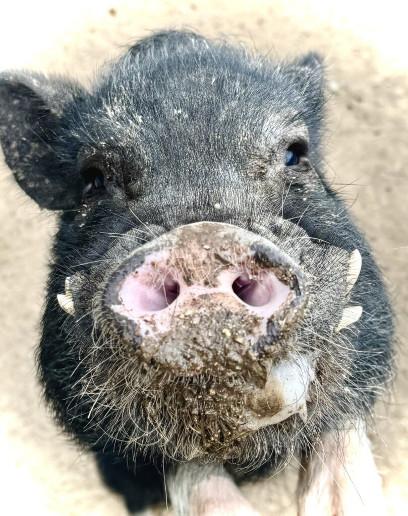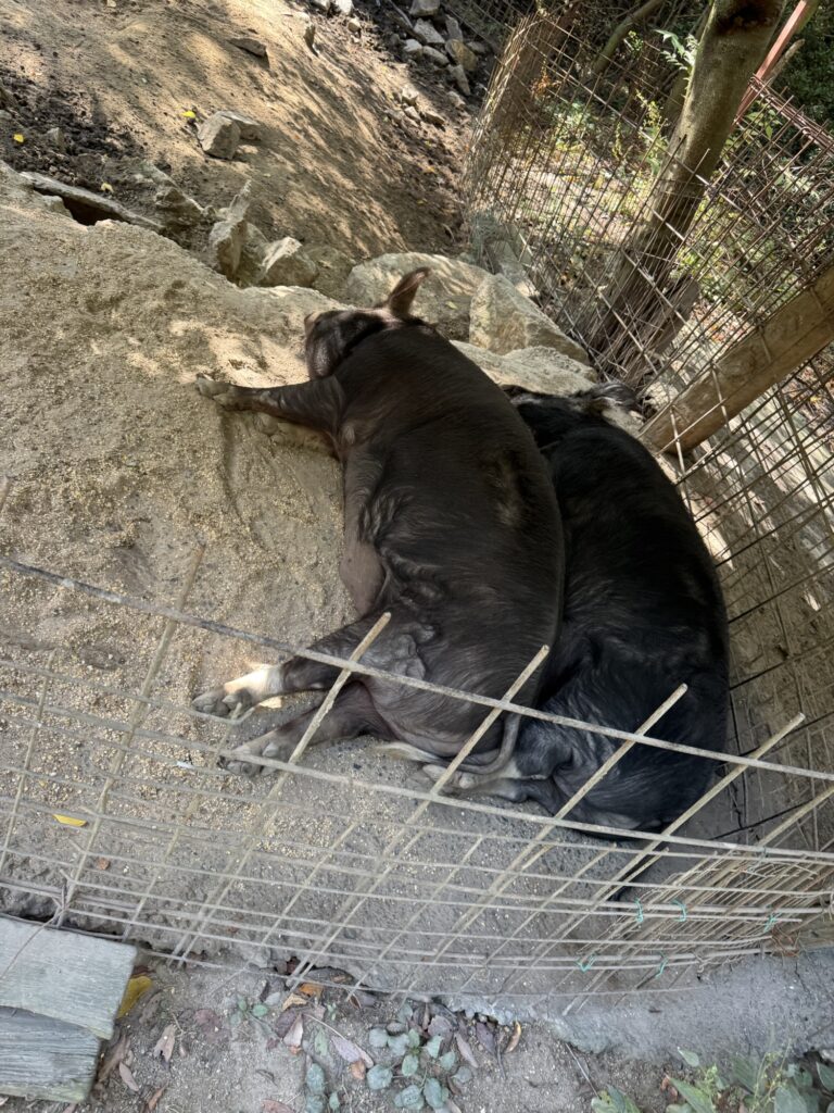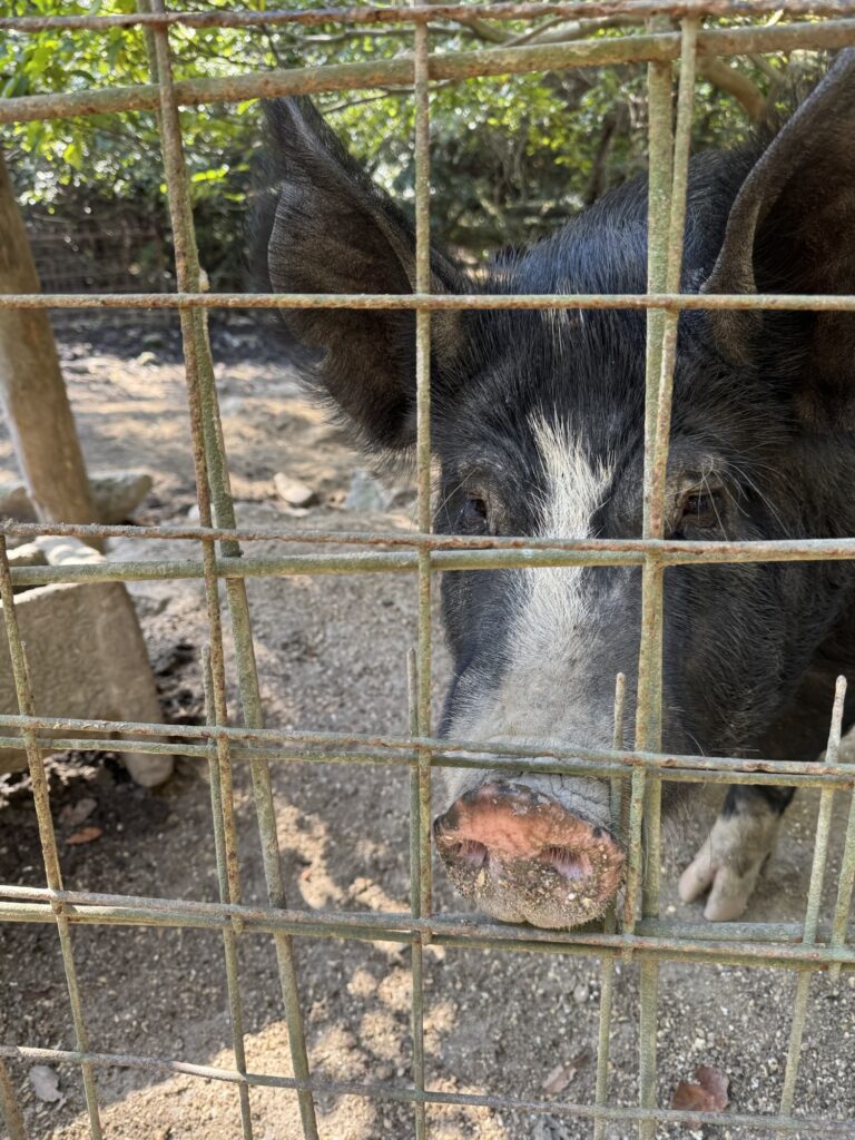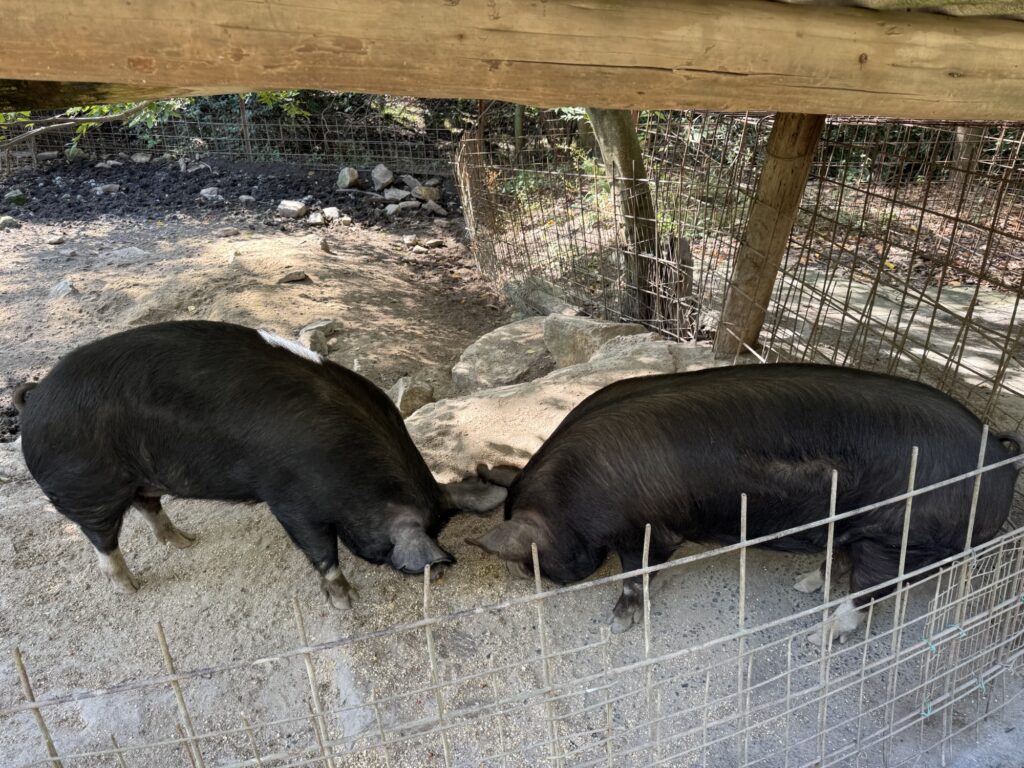 座りたくなったので一番近いベンチに座ったら目の前ミニブタさんでした!