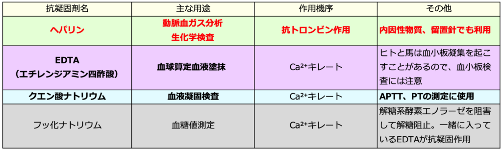 ◉採血時に用いる抗凝固剤の一覧表はこちら👇