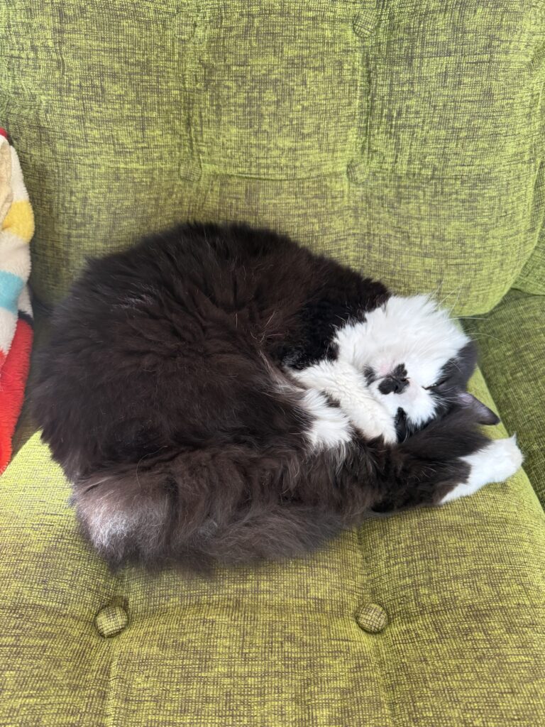 くるんと丸くなって眠るルルくん。