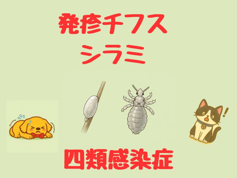 | 四類感染症 | 動物・昆虫などが媒介 | 発疹チフス、日本紅斑熱、Q熱、ツツガムシ病 | 媒介動物がカギ |