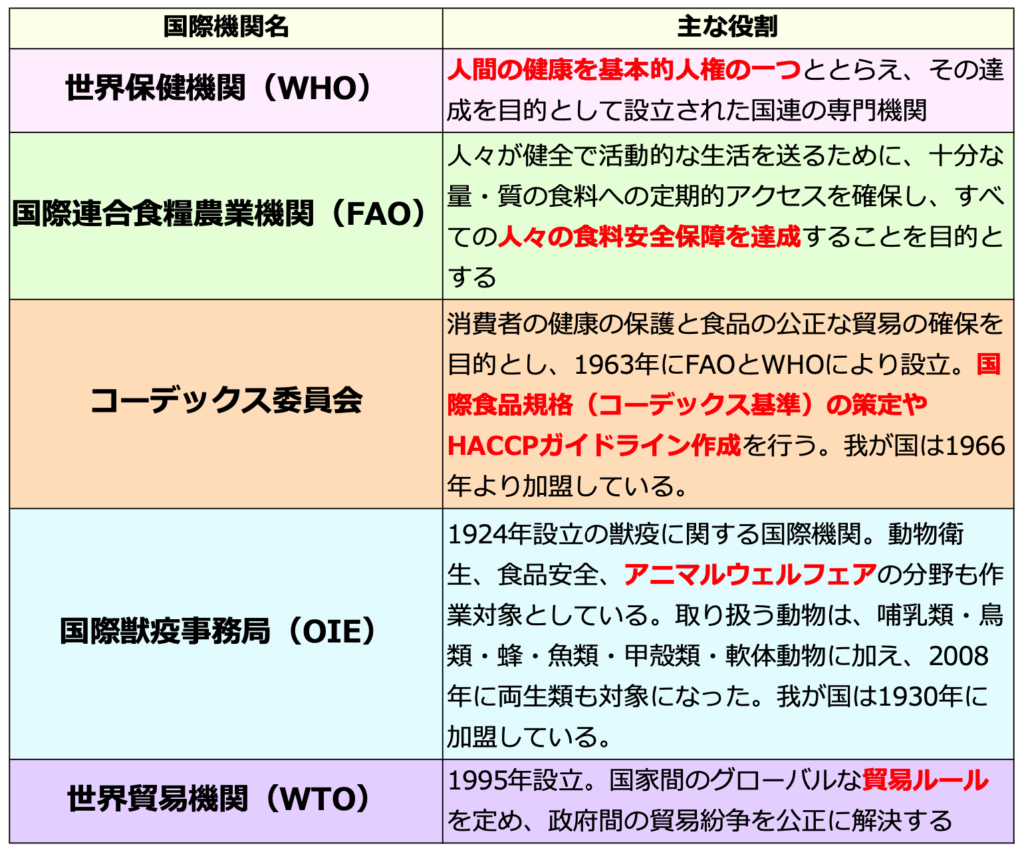国際食品規格(コーデックス規格)の策定や、HACCPガイドラインの作成などを行ってるよ♪