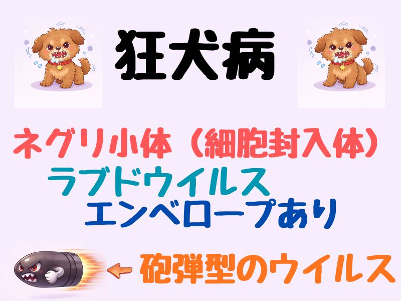 ○ ⑤ 狂犬病では、ネグリ小体と呼ばれる細胞質内封入体が観察されます。