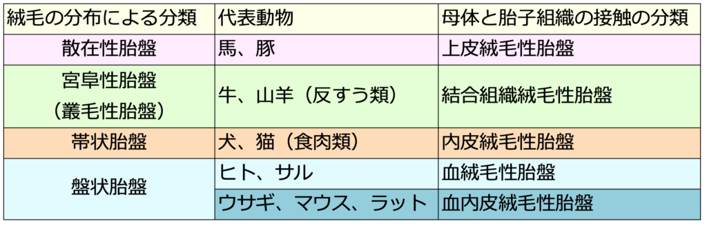牛は宮阜性胎盤、犬は帯状胎盤、ヒトやウサギは盤状胎盤!