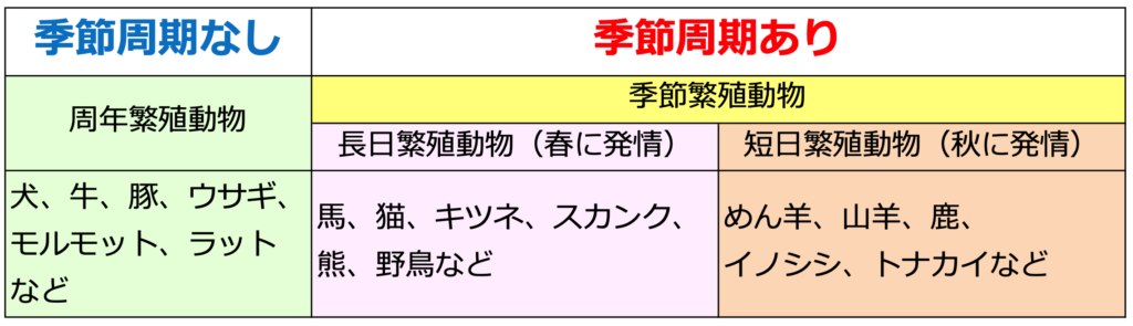 長日繁殖動物(長日季節繁殖動物)はどれ?