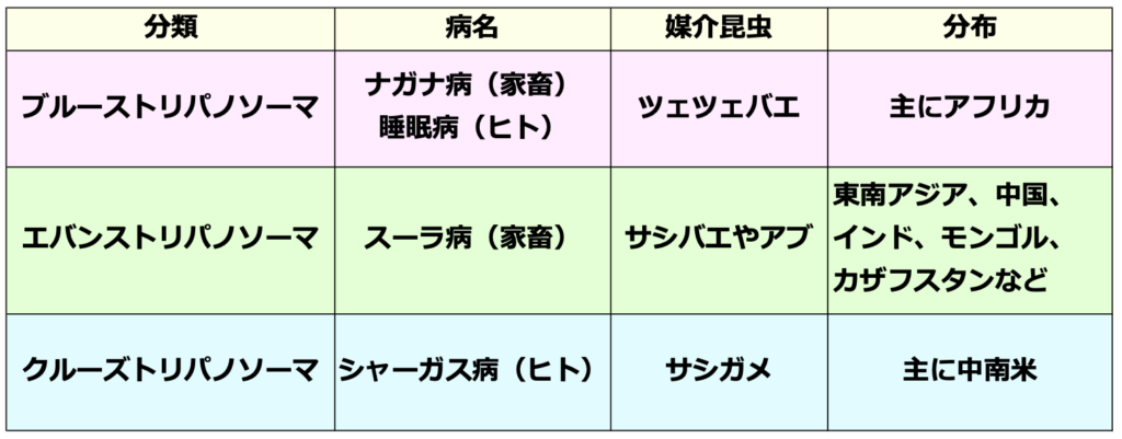 ◉トリパノソーマの一覧表はこちら👇