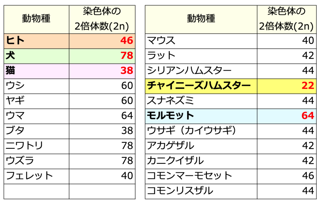⭕ ④ モルモット の染色体の2倍体数(2n)は、64 !
