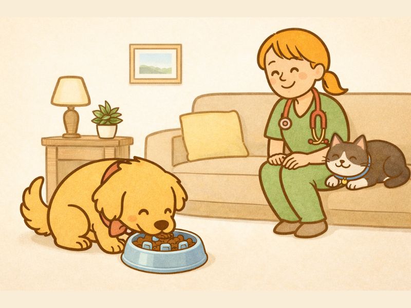飼い主さんとしては、できればゆっくり落ち着いて食べてほしいですよね。