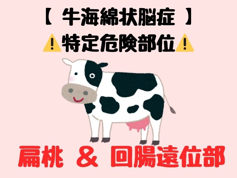 牛海綿状脳症の全月齢の牛における特定危険部位は 扁桃と回腸遠位部 !