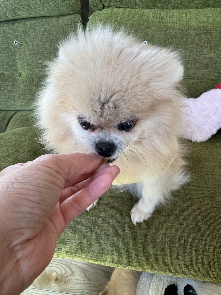 みなさんもぜひおうちの子におやつをあげるふれあいタイム、