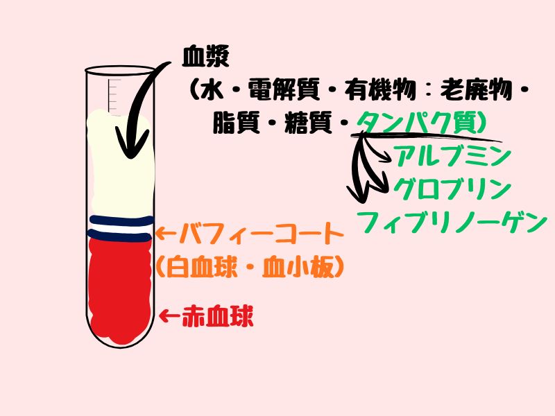 上層の液体(血漿)層との間に「バフィーコート」と呼ばれる層ができるよ!