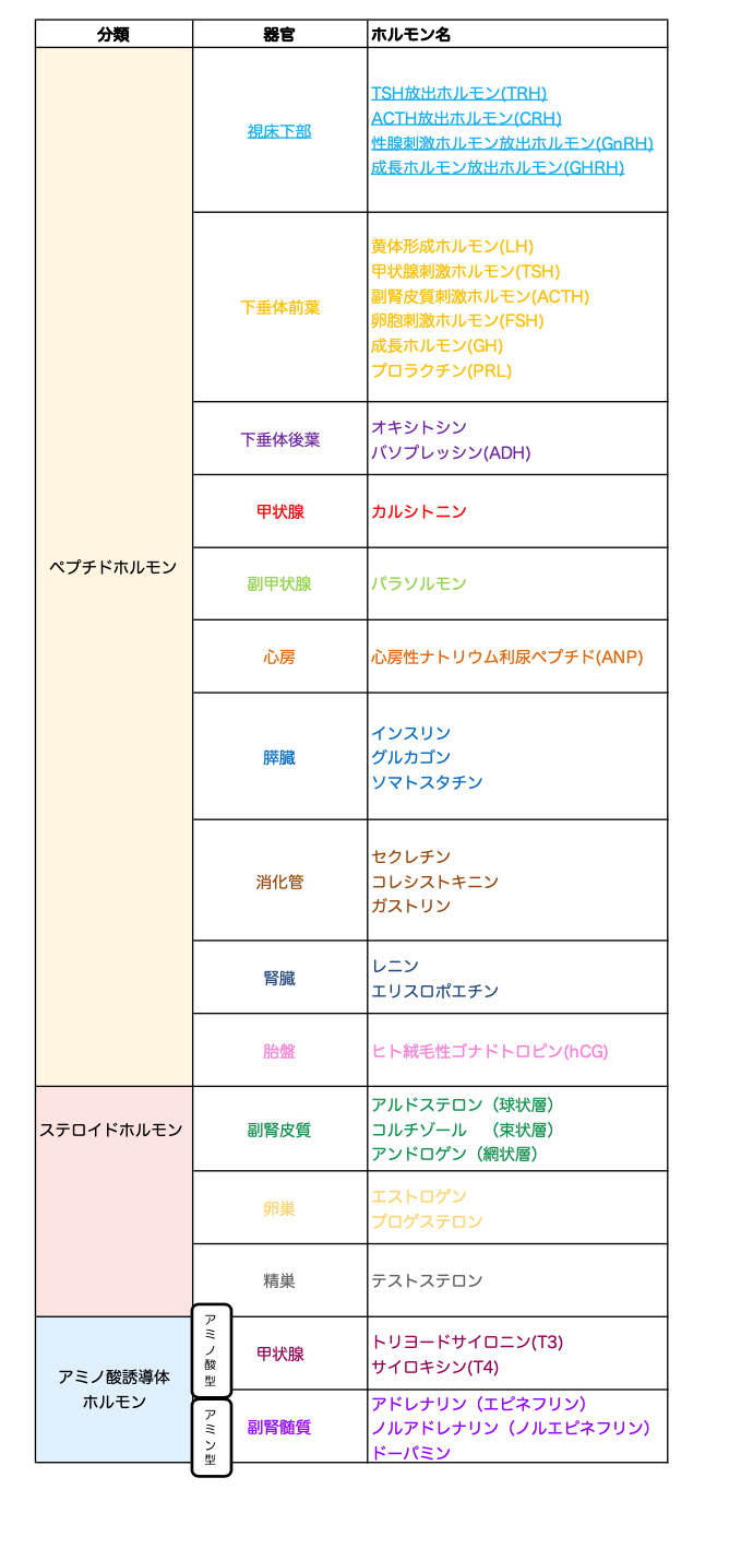 ホルモンはたくさんあるので覚えるのが大変!