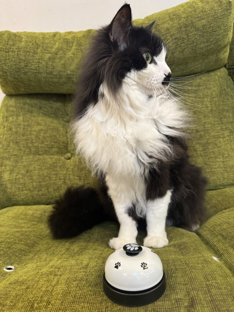 ルルくん、「ベルを鳴らしたらご褒美をもらえること」を覚えてくれるのでしょうか。