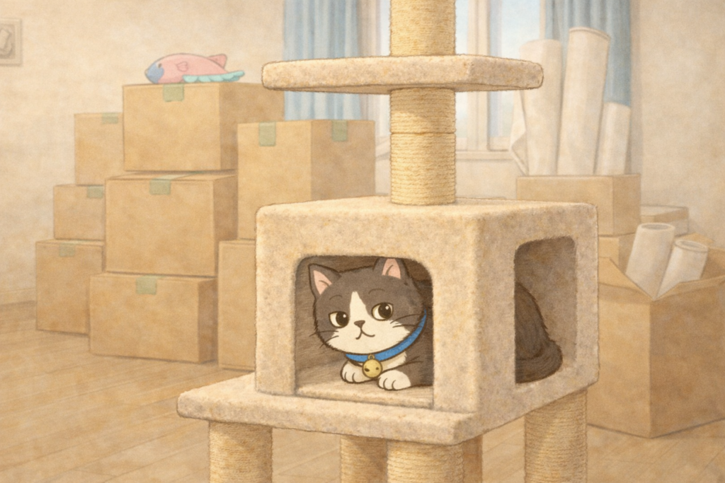 猫は環境の変化が苦手なので、隠れられる場所や安心できる場所を作ってあげると安心します。
