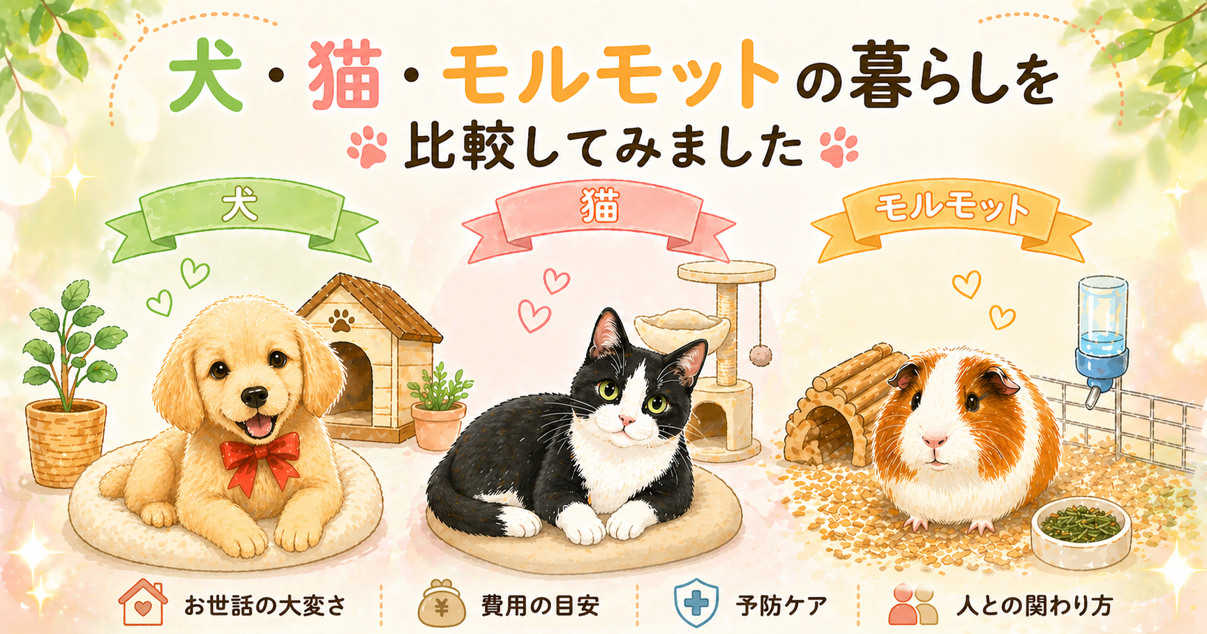 🐾犬・猫・モルモットの暮らしを比較してみました