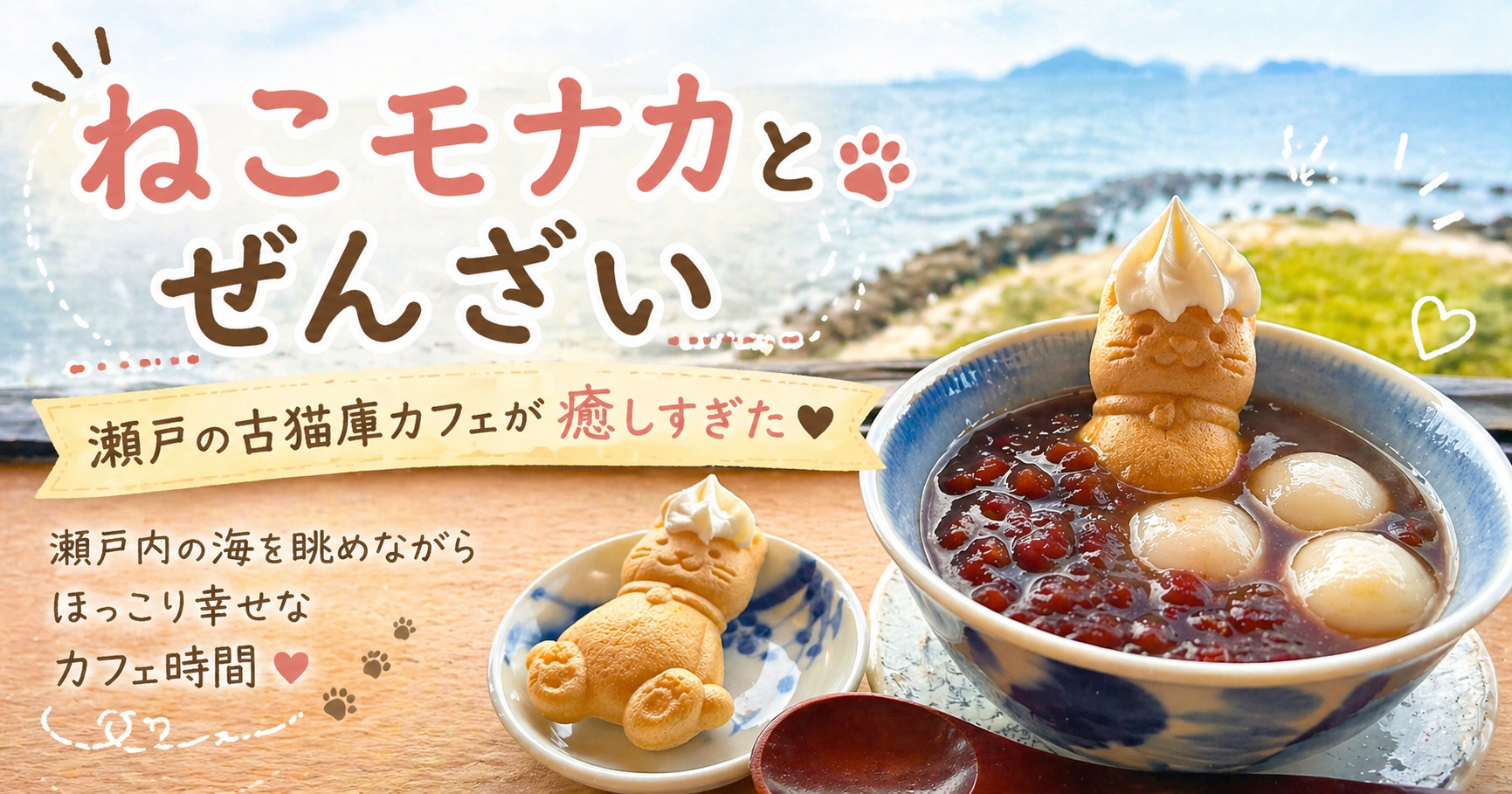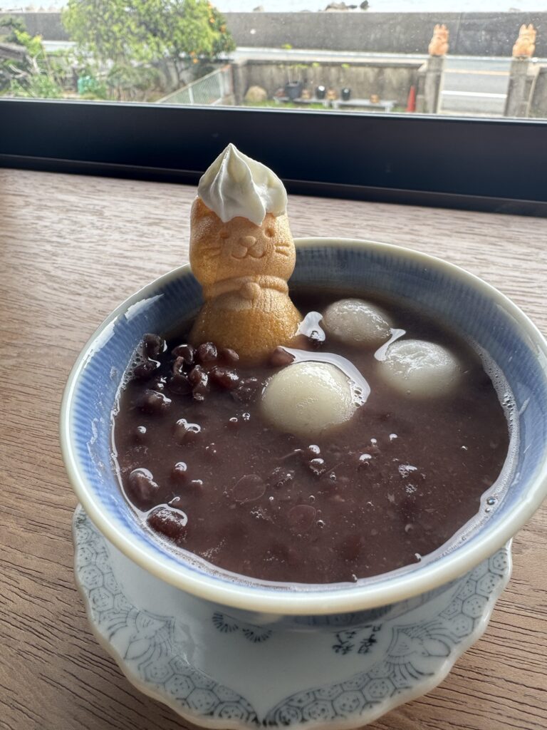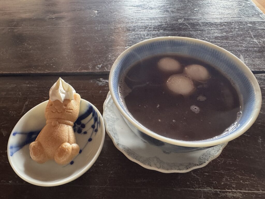 かわいいねこモナカと、あたたかいぜんざいにほっこりしながら、