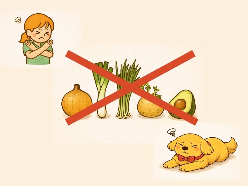 | 玉ねぎ・ねぎ・にら | 中毒の原因になります (貧血・嘔吐・下痢など) |