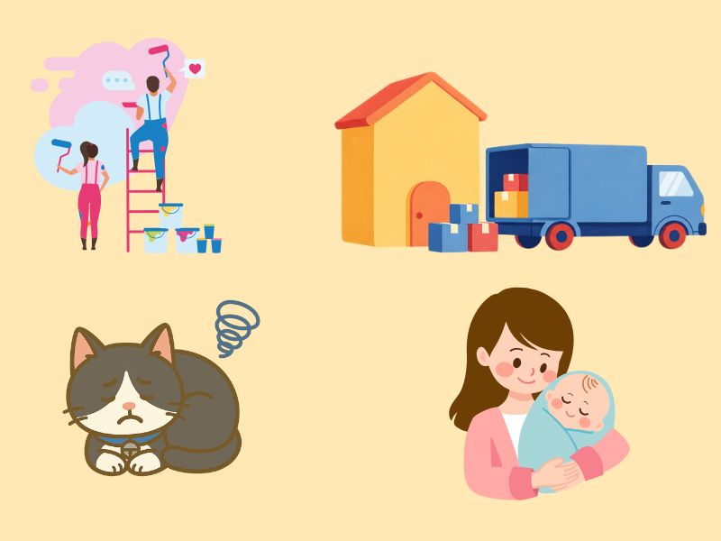 → たっぷり遊んであげる、やさしく声をかける、隠れ場所を用意するなど、安心できる時間を増やしてあげましょう。